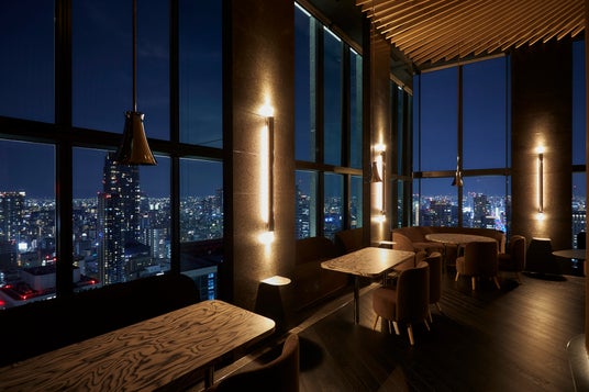 大阪市街の夜景を望む、店内