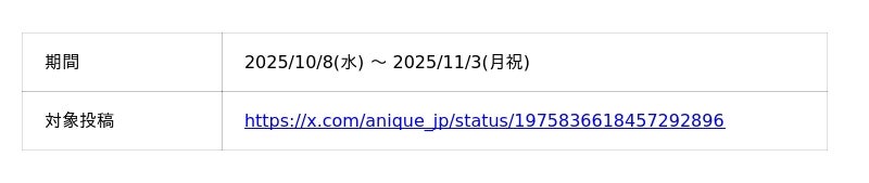 1.Anique公式Xアカウント【@anique_jp】をフォロー