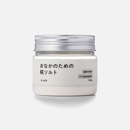 おなかのための糀(こうじ)ソルト「おなかのための糀(こうじ)ソルト」(税込990円/100グラム)は、岩手県産「あきたこまち」と「ひとめぼれ」の「米糀こうじ)」と、「天日結晶塩」のみでつくる「発酵調味料」です。「糀(=米麹)」に含まれる30種類以上の「酵素」を生きた状態で調味料にするため、製造工程で60度以上の加熱処理をしていません。糀菌由来の生きた「酵素」が消化を助け、腸内の「善玉菌」を増やすので、免疫力アップにつながります。まろやかな塩味とうまみで、料理全般に幅広く使っていただけます。
