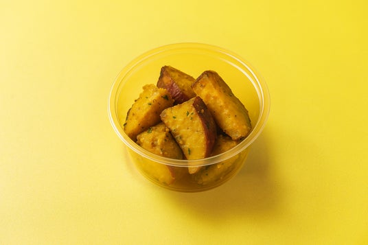 おなか想いのサツマイモのポテサラサツマイモのビタミンCは加熱しても壊れにくい形で含まれており免疫力向上や美肌効果が期待できます。また、色付けに使用するターメリックに含まれるクルクミンには強い抗酸化作用や抗炎症作用があり、シミやシワの予防に効果が期待できます。夏におすすめの食材です。