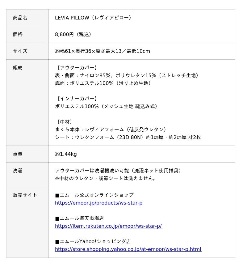「身体に合った寝る・座る・たたむ」を提供する健康家具ブランドEMOORを展開する株式会社エムール(東京都立川市:代表取締役 高橋 幸司/以下、エムール)は、2026年1月20日より「LEVIA PILLOW(以下、レヴィアピロー)」の販売を開始しました。