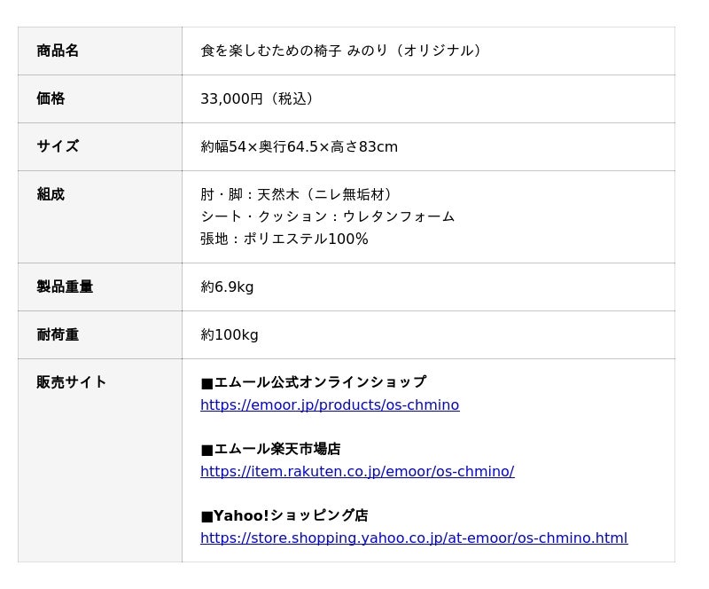 「食を楽しむための椅子 みのり」オリジナル