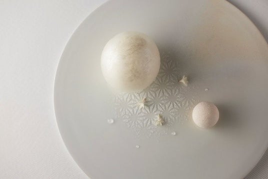 前菜には、ブッシュ・ド・ノエルを模したパテ・アンクルートを。メインには、じっくりと火入れした和牛に炭の香りをまとわせ、深みのある味わいに仕上げました。デザートは、レストランに飾られたアートからインスピレーションを得て、視覚と味覚の両面で楽しめる一品に。