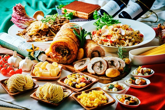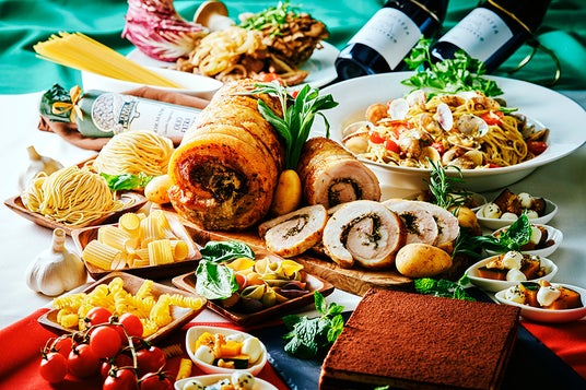 約60種類の料理が楽しめるイタリアフェアブッフェを開催。ハーブを巻き込んだイタリアの伝統的なローストポーク「ポルケッタ」や、牛のレバーと玉ねぎの煮込み「フェガト・アッラ・ベネツィアーナ」、「ボンゴレ・ビアンコ」などのイタリア料理が一堂に集い、デザートには「ティラミス」も登場します。