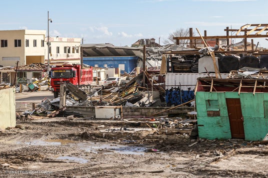 セント・エリザベスのブラックリバーを、ハリケーン「メリッサ」が通過した後の様子。多くの建物が損傷している(ジャマイカ、2025年11月2日撮影) (C) UNICEF/UNI895411/Cobran