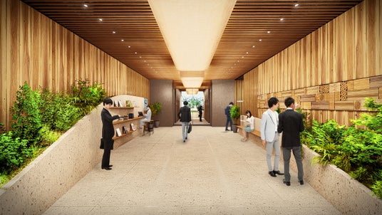 内装・仕上げ材としても木材をふんだんに利用し、専有部内では木に直接触れられる窓際スペースを設けながら、都心にいながらも自然を身近に感じられる執務空間を実現。高い環境性能と快適性を兼ね備えた、次世代の「行きたくなるオフィス」を創出いたします。