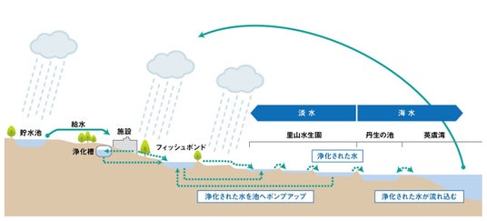 当社はこれまでも本敷地内の新規開発において、国立公園にふさわしい環境づくりとして1万本超の新規植栽を実施するなど、森の再生に取り組んできました。NEMU RESORT内においても地元行政と連携し、敷地内の丹生の池の水門を開放することで干潟を再生し、生物多様性が回復することにより英虞湾の漁場環境の改善に寄与するなど、自然環境への取り組みを推進してきました。今回のリニューアルでは「里山水生園」を再整備し、多様性に富んだ水辺環境の再生に取り組み、豊かな自然と触れ合える空間を創出いたします。