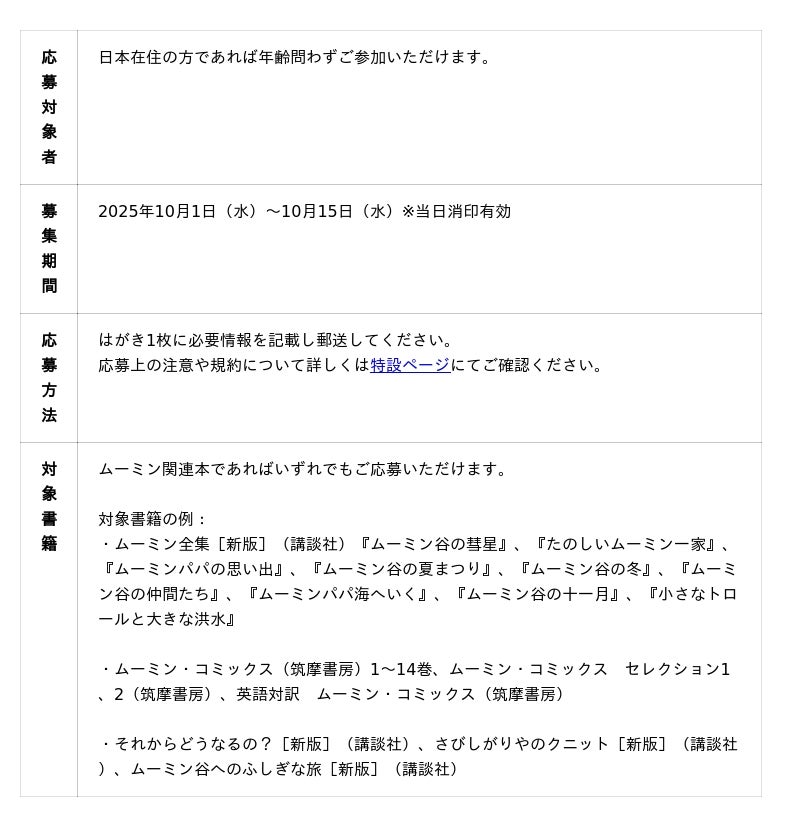 「ムーミンのものがたり 読書感想文・画コンテスト」特設ページ https://www.moomin.co.jp/news/others/68a3dbc1961f3