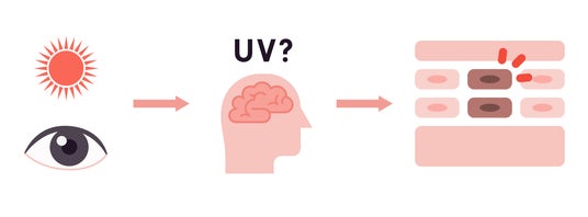 スキンケアにおける紫外線対策は一般化する一方、「目」のUVケアに対する意識は、依然として個人差があるのが現状です。目に紫外線が当たることで肌の日焼けに繋がる可能性があることはまだ広く知られていません。紫外線が角膜に当たると、脳はメラニン色素の生成を指令し、肌の色素沈着を促すことがあります。サングラスは、こうした紫外線から目を保護するための極めて有効なアイテムです。