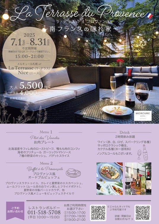 【メルキュール札幌】7/1(火)ホテル中庭で、夏季限定ビア・ワインテラス『La Terrasse du Provence(ラ・テラス・デュ・プロヴァンス)』をオープン。