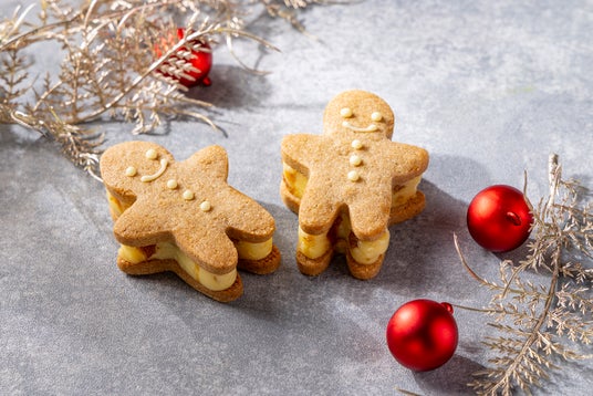 ジンジャーブレッドサンドジンジャーブレッドマンは、家族の幸せを願う象徴として知られ、その物語は多くの人に親しまれています。サブレにはたっぷりのスパイスを、バタークリームには洋酒漬けのドライフルーツを混ぜ込み、クリスマスの伝統菓子シュトレンのような味わいに仕上げています。