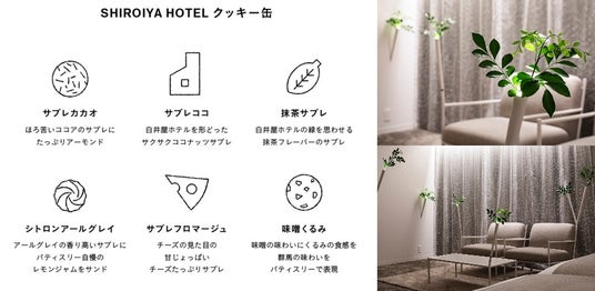 白井屋ホテルは、前橋中心市街地の再生プロジェクトの一環として、5年前に再生され、以来地元の方々と訪れる人々をつなぐ、まちのリビングとして親しまれています。本商品に詰められた6種のクッキーは、ホテル敷地内の「白井屋ザ・パティスリー」のパティシエたちがひとつひとつ心をこめて手作りしたものです。前橋を代表するお土産になることを願い、ひとつの小さな箱におさめました。白井屋ホテルショップ、白井屋ザ・パティスリー、オンラインショップにてご購入いただけます。