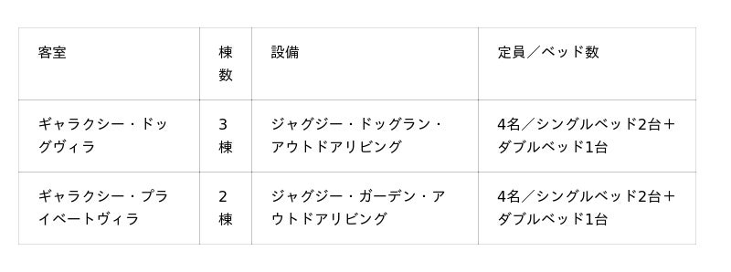 【Galaxy Jacuzzi Resort 施設概要】