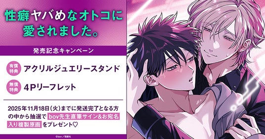 ホーリンラブブックスではbov先生最新コミックス『性癖ヤバめなオトコに愛されました。』発売を記念して、豪華キャンペーンを実施いたします!