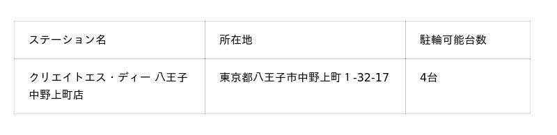 エネルギー・住まい・暮らしの総合サービス事業を展開するシナネンホールディングス株式会社(本社:東京都品川区、代表取締役社長:中込 太郎)の子会社で、移動を楽しく、快適にするシェアサイクル「ダイチャリ」を運営するシナネンモビリティPLUS株式会社(本社:東京都品川区、代表取締役社長:菅原 健)は、「八王子芸術祭2025」開催に合わせ、東京都八王子市内に、二次交通の確保による観光周遊性の向上を目的としてシェアサイクル「ダイチャリ」を、11月4日(火)より、ドラッグストア「クリエイトエス・ディー 八王子中野上町店」に新規導入したことをお知らせいたします。