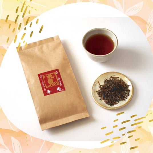 商品説明:一子相伝の直火焙煎で仕上げたほうじ茶。美しい赤色から、地元福知山に伝わる酒呑童子の伝説にちなんで【赤鬼】と名付けました。