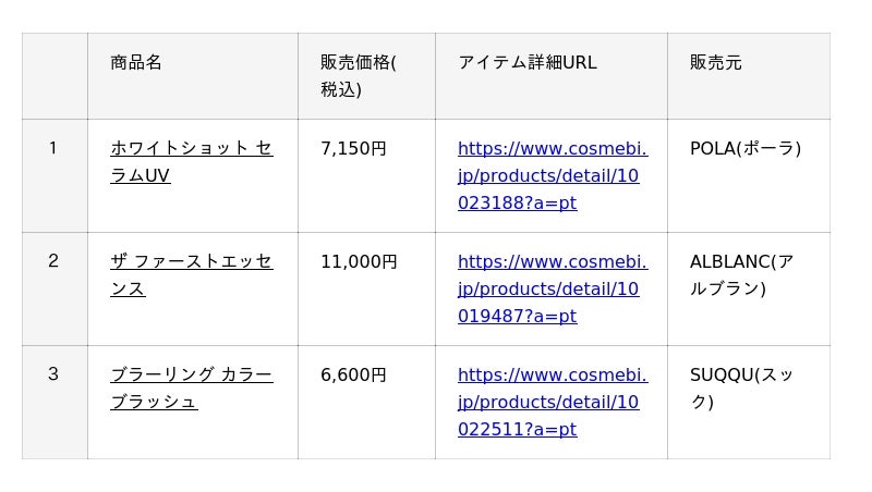 ・公式サイト   :https://www.cosmebi.jp/?a=pt
