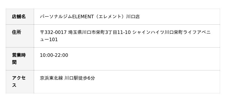 この度、川口エリアで初めてとなる通い放題のパーソナルジムをオープンすることとなりました。ウエイトトレーニングとマシンピラティスを通じて、お客様の「運動の習慣化」の定着のための支援を行ってまいります。一人ではできなかった『運動の習慣化』『身体が変わっていくダイエット体験』を、ELEMENTでは実感いただけるでしょう。