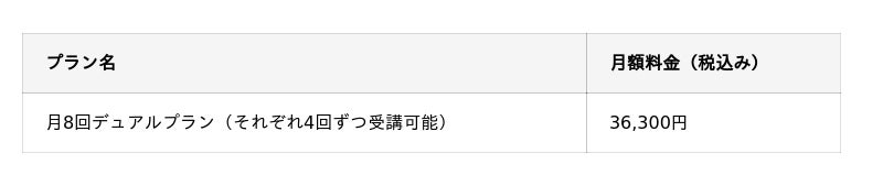 <ウエイトトレーニング×マシンピラティス 料金プラン>
