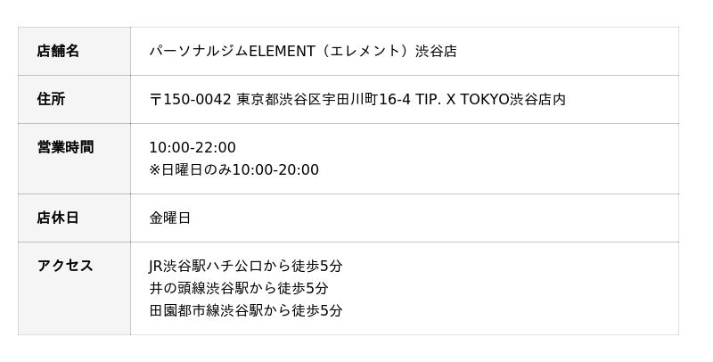 ウエイトトレーニングお申込みページ:https://element-gym.com/element-top/all/shibuya/