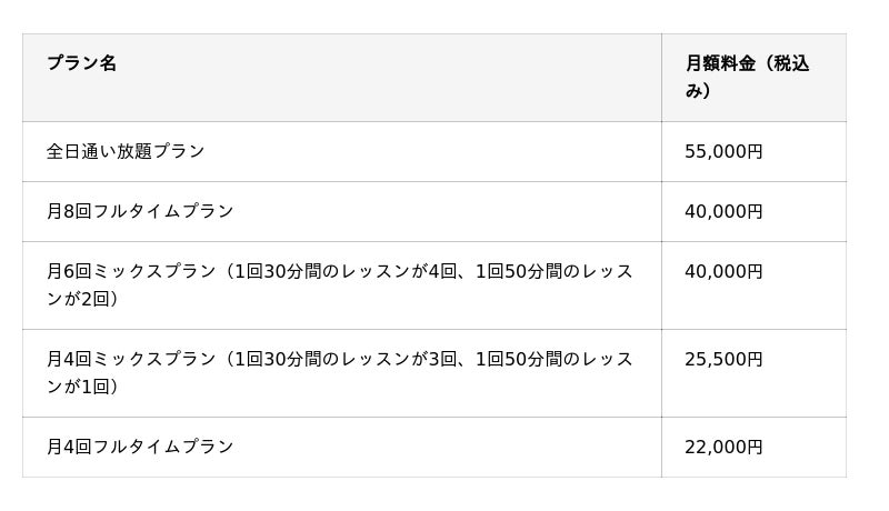 <マシンピラティス料金プラン>