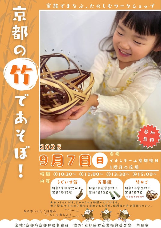 ■京都府では、「京銘竹」の魅力や竹林整備の重要性を広くPRするため、9月7日にイオンモール京都桂川で、ワークショップを開催します。