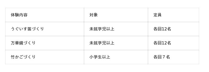 〇竹材に親しんでいただくワークショップ(お一人につき、いずれか一つ)