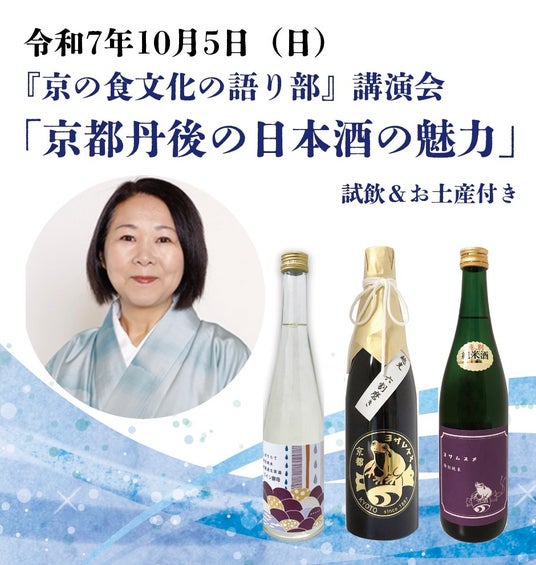 ■京都府では、府内産農林水産物及び加工品の消費拡大を図るため、「京の食文化の語り部」が京の酒の魅力を伝える講演会を10月5日に開催します。