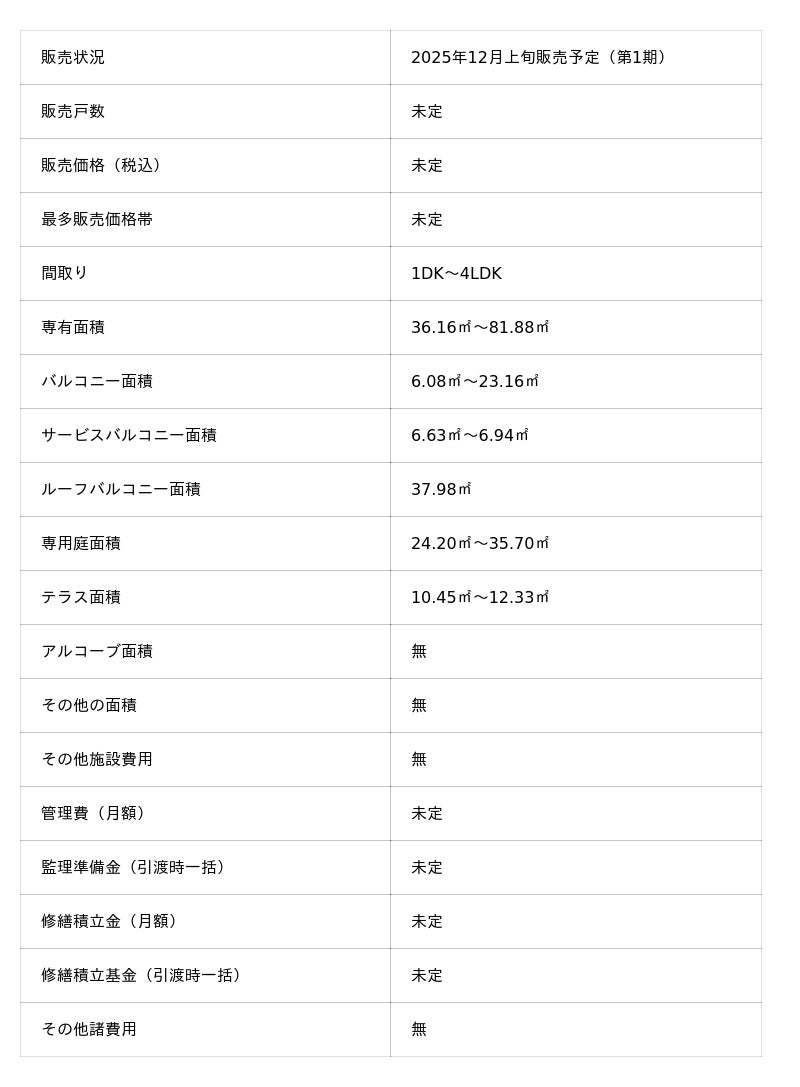 今期の販売価格・販売戸数は未定です。本広告を行うまでは、本販売物件に関する、購入のお申込み、契約締結等には一切応じることはできませんので、あらかじめご了承願います。
