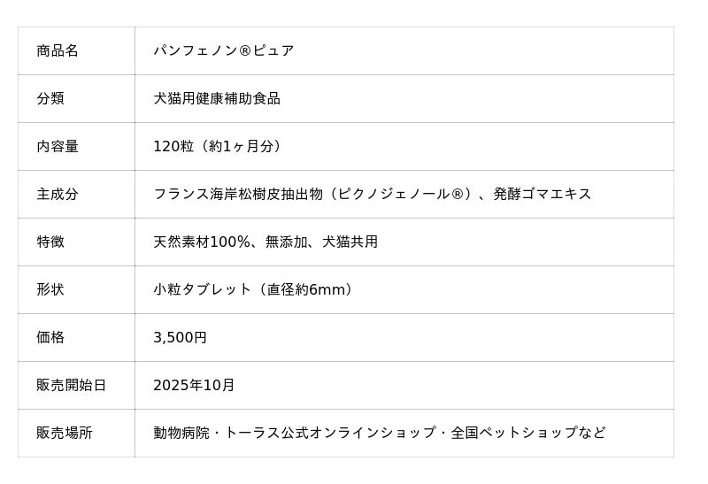 ペットのサプリメント市場品揃えNo.1※(日本国内/2025年9月時点)のトーラス株式会社(本社:神奈川県綾瀬市、代表取締役:赤津徳彦)は、犬猫の心臓・循環器の健康維持を目的とした新サプリメント「パンフェノン(R)ピュア」を2025年10月に発売しました。