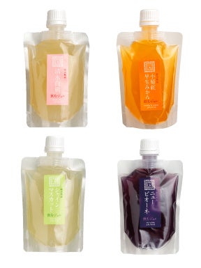 国産の果実をワンハンドで楽しめる!果肉を丁寧にすりつぶして仕上げたジュレは、ストローで飲めるほどなめらかな口当たりです。