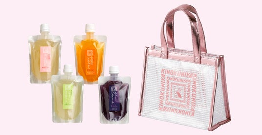 紀ノ国屋から光沢感のあるかわいらしいピンク色のクリアバッグに、フルーツを贅沢に使用した飲むジュレを詰め合わせた「飲むジュレセット」が新たに登場しました。自分へのご褒美としても、季節の贈り物としても最適です。