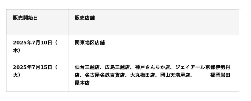 2025年7月10日(木)より順次販売開始いたします。なお、販売開始日は店舗により異なりますので、下記販売店舗情報をご確認ください。