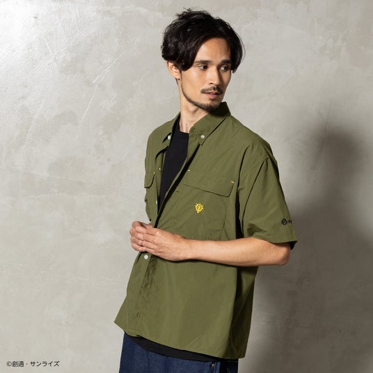「ガンダムシリーズ」より『機動戦士ガンダム』からブラックにレッドの配色が目立つシャアモデル、カーキにイエローの刺繍でジオン公国軍マークを配置した2種展開。『機動戦士ガンダム 逆襲のシャア』よりネイビーベースにレッドのアムロマークの刺繍が目立つアムロ・レイモデル1種、最新作の『機動戦士Gundam GQuuuuuuX』からは、ブラックにパープルのポメラニアンズロゴの刺繍を施したモデル1種の計4種展開。いずれも左袖口にはSTRICT-Gのロゴ刺繍を施し、ボタンはオリジナルの刻印が入ったものを使用したこだわりのシャツです。Tシャツの上から羽織るのにピッタリなアイテムです。