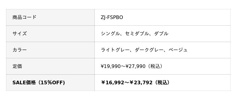 対象期間中にZINUS公式サイト(https://zinus.jp/)で対象商品をご注文いただくと、全品15%OFF(一部セール除外品を除く)でご購入いただけます。