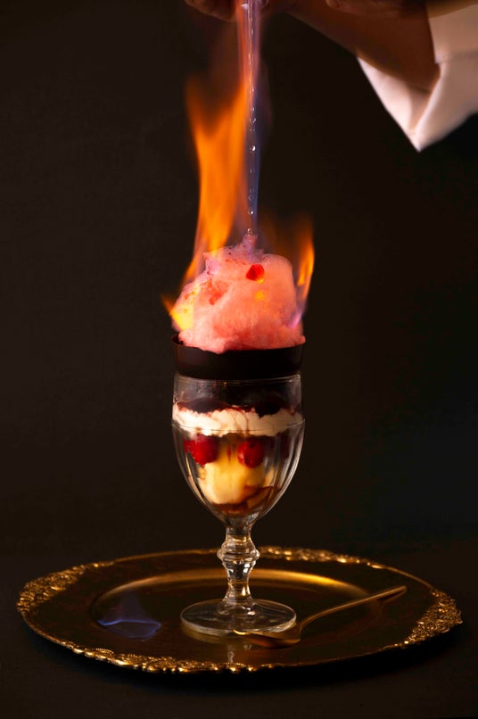 目の前で繰り広げられるフランベパフォーマンス。特別な日にふさわしいインパクト抜群の新感覚パフェが誕生