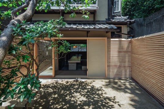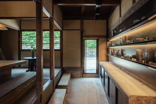「FAS」の旗艦店となる京都東山店は、まちの喧騒から離れた一角に位置する、100年近い歴史をもつ一軒家をリノベーションしたものです。庭には日本の伝統工法である洗い出し式の床を採用。様々なアート作品を楽しみながら、一階のカフェでは「FAS」のブランドコンセプトである「発酵と科学」に由来して、発酵チーズケーキをご提供しています。