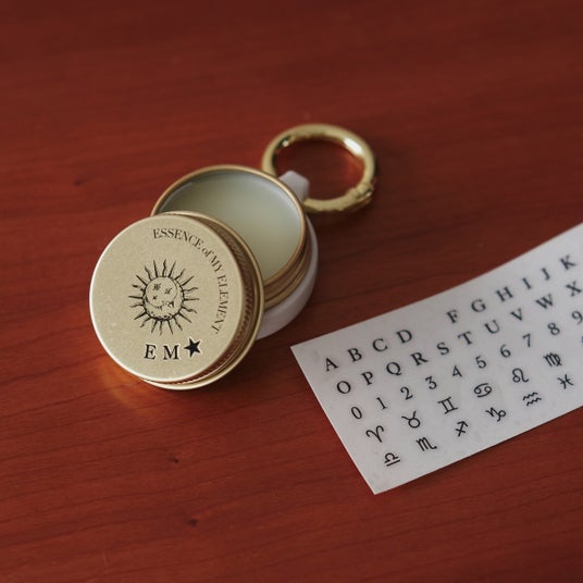 ●チャーム付きマルチバーム天面には占星術をイメージしたアートをあしらい、アルファベットや星、月などのモチーフシールで自由にカスタマイズが可能です。