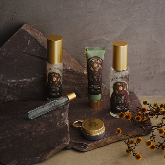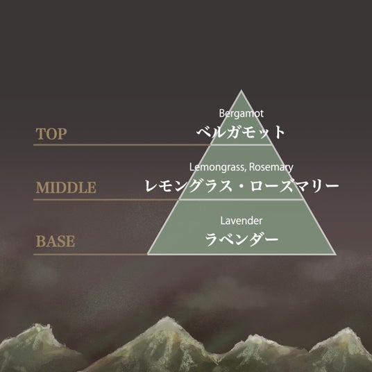 Mindful Earthの香りレモングラスとローズマリーの清々しいハーブに、ベルガモットのやさしいシトラスが重なり合う、心地よく澄んだハーバルの香り。