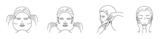 ●添付のスパチュラ、または指先にパール粒1個分を取り、ていねいに顔全体と首筋になじませてください。