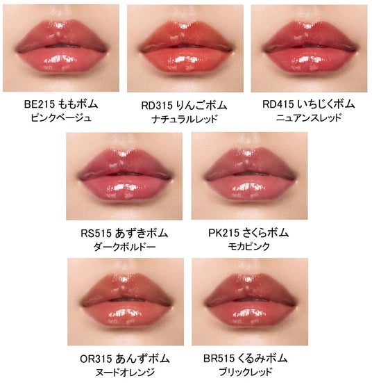 ◆ツヤオイルがはじける処方設計から、すべての色に「ボム」という名がついた、わくわくするような名称の7色展開です。
