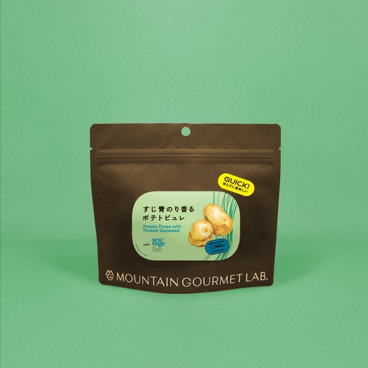 そして出来上がったこの”すじ青のり香るポテトピュレ”。シーベジタブルが手掛ける香り高いすじ青のりを使わせてもらう事でお湯を注いだ瞬間から美味しさが始まります。味付けは最小限で、シンプルにした分食べ飽きしない、ピュアな美味しさが魅力のマッシュポテトになりました。