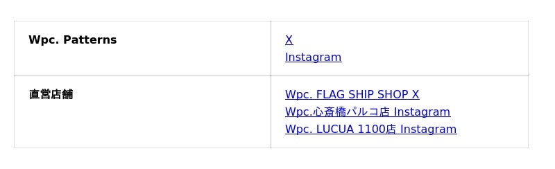 展開ブランド :Wpc. / W by Wpc. / Wpc. IZA / SiNCA by Wpc. / ONDOO by Wpc.