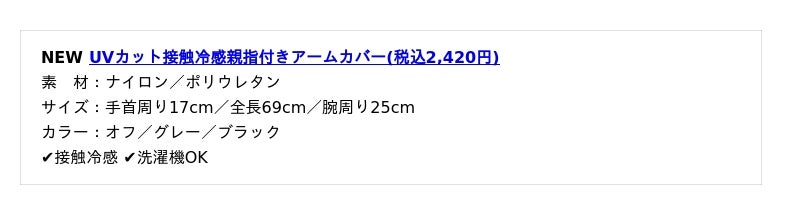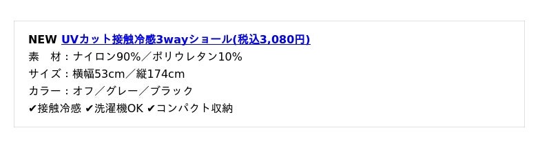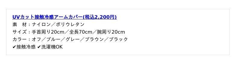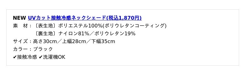 その他、二の腕から手の甲までしっかり守るアームカバーや3wayショール、お手持ちの帽子に取り付け可能なネックシェードといった新作アイテムも取り揃えております。