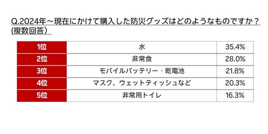 ■2024年以降の人気防災グッズ上位は「水」「非常食」「モバイルバッテリー」