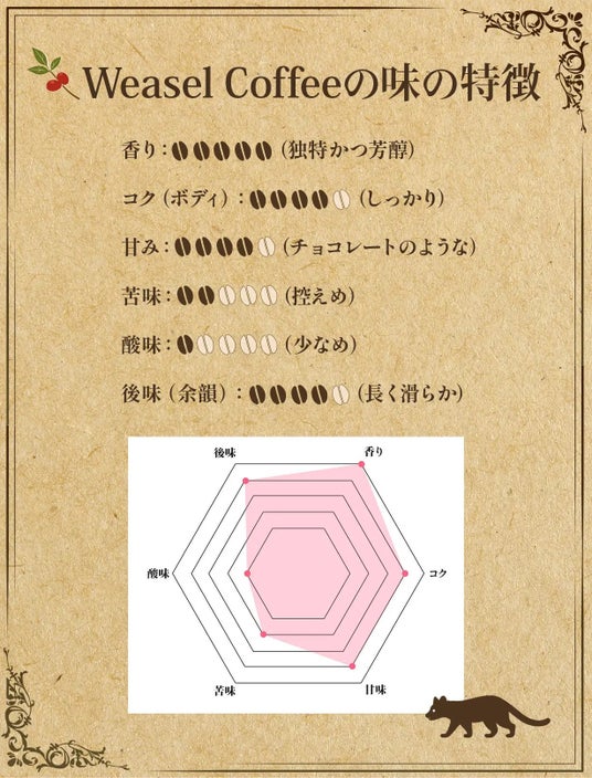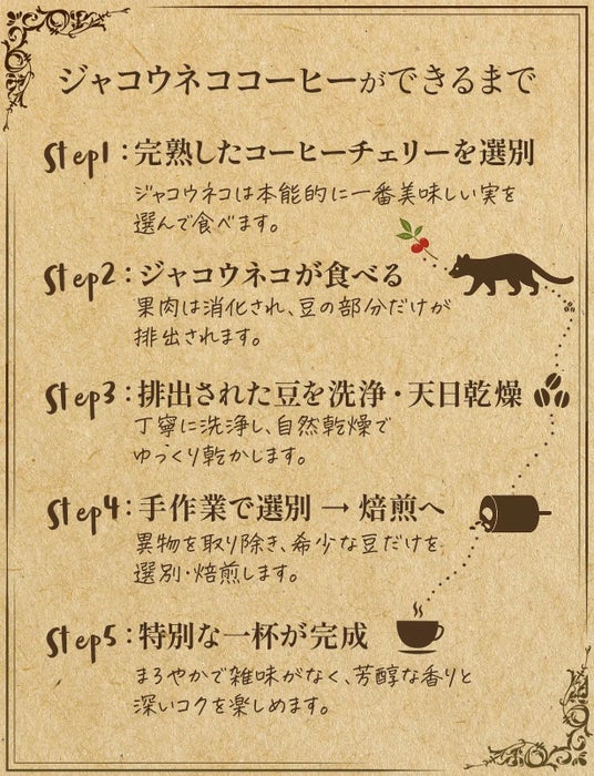 – 【ジャコウネコ豆5%使用】幻のコーヒーを手軽に味わう、特別なブレンド