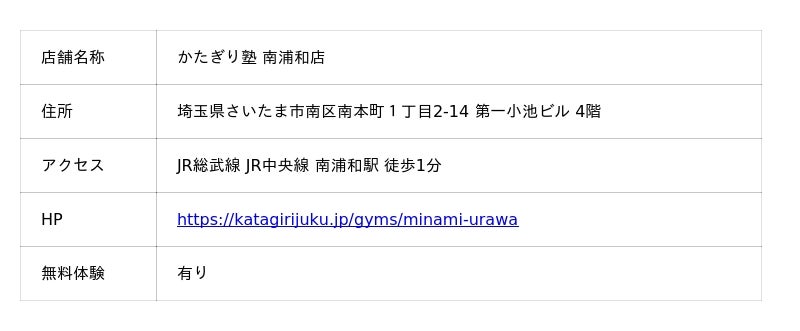 ▶︎https://katagirijuku.jp/gyms/minami-urawa