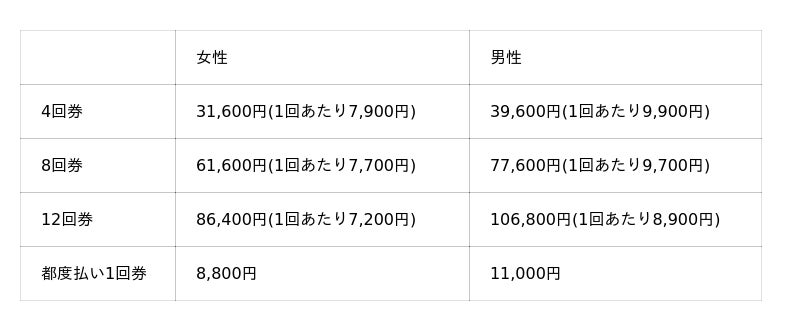 パーソナルレッスン料金