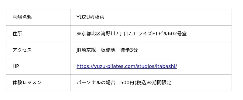 板橋駅に、ココロとカラダの健康美をサポートするピラティスレッスンを提供しているYUZUが通算62 号店目を11月にOPEN!