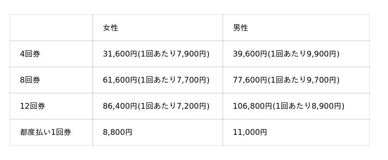 パーソナルレッスン料金